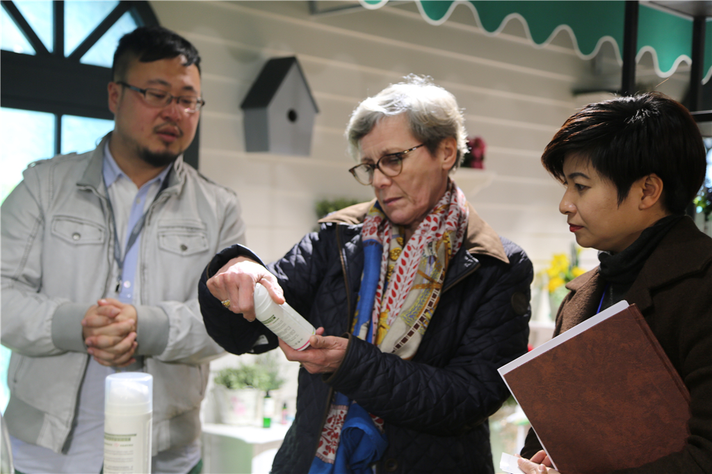 The team of experts to the Dong Fang International Cosmetic Chemists Association (IFSCC) former president, President, the French cosmetics chemists association, vice president of L'OREAL global technology Ms. Claudie, IFSCC (IFSCC), chairman of the public relations department chairman Chen Chuangguang mr.. Expert group visited the house of the characteristics of the exhibition hall, the production of plant and cosmetic technology R & D center. Throughout the visit, a line of products featured in the exhibition hall display, aesthetic creativity, scientific research and technology patent gave a high evaluation of laboratories and scientific research facilities showed a strong interest, from time to time and building company research technical communication.